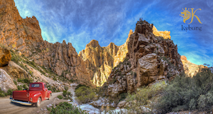 Südafrika ist eines der schönsten Länden dieser Welt. Der Slogan “Eine Welt in einem Land” ist sehr passend. Wir möchten euch gerne unsere beliebtesten und weniger bekannten Orte dieses Landes vorstellen und ebenfalls einige deren freundlichen Bewohner. Im Kapitel 1 von dem Tagebuch des Roten Pick Up ’53 haben wir den Kyburg Boutique Wein bei Café Photo Albert, in Prince Albert, abgeliefert. Nun geht es weiter und wir fahren heute die 27km lange kurvenreiche Naturstrasse über den Swartbergpass nach Oudtshoorn. Der Pass steigt bis auf ca. 1’500m über Meereshöhe und wurde im Jahre 1888 eröffnet. Der Swartberg hat eine Höhe von 2’325m und enthält einer der wenigen Bergformationen dieser Welt, wo man ganze Ketten von Felsenfalten bewundern kann. Der Pass führt durch aussergewöhnliche geologische Formationen und ist besonders bekannt für seine spektakulären Formationen auf der Prince Albert Seite. Auf dieser nördlichen Seite des Passes, führt die Strasse durch 700m hohe senkrecht stehende Quartzit-Mauern. Die bekannteste dieser orangen Quarzmauern ist die spektakuläre “Wall of Fire”. Die Passfahrt gibt uns eine wunderbare Sicht auf die Ebenen auf beiden Seiten des Swartberges. Der Swartbergpass gilt als ein südafrikanisches Monument, ist ein UNESCO Naturwelterbe und verbindet Prince Albert in der Zentral Karoo mit der Kleinen Karoo.