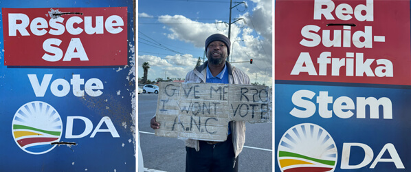 Zum Schluss noch der Hinweis auf die Wahlen am Kap. Die finden am 29. Mai statt und werden mit großer Spannung erwartet. Deuten doch die Umfrage erstmals darauf hin, dass der ANC seine absolute Mehrheit verlieren könnte. Würde dieses Rennen am Westkap entschieden, wäre der ANC ohnehin längst entmachtet. Dazu passt ein Bettler, den wir auf dem Heimweg an einer Ampel auf der N2 trafen. Der nämlich bittet um eine Spende von 20 Rand und verspricht im Gegenzug nicht den ANC zu wählen.