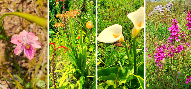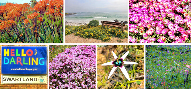 Darling bot uns ein wahres Naturerlebnis, für welches Menschen zu Recht von nah und fern anreisen. Blumenwiesen, die mal in sonnigem Gelb, mal in poppigem Orange und dann in strahlendem Weiß, Pink und Lila leuchten so weit das Auge reicht. Plötzliche Farbtupfer am Straßenrand und Blumen, die wie Farbklekse auf Gehwegen überraschen, lassen die Herzen höherschlagen. Ein Gefühl von Wiederbeginn, neuem Leben und frischer Energie liegt in der Luft. Man kann den Frühling geradezu riechen! Selbst in den Vorgärten findet man zwischen den üblichen Gartenpflanzen jede Menge Wildblumen. Immer wieder halten wir an, um immer wieder neue Eindrücke, neue Blumenarten und neue Farben in unserem Bildersortiment aufzunehmen und festzuhalten. Schon wieder eine Blumenart, die wir noch nicht hatten? Kein Wunder, denn an der Westküste Südafrikas gibt es mehr als 350 Wildblumenarten, eine schöner als die andere. Immer wieder hüpft einer von uns aus dem Auto, um noch mehr Frühling in Bildern für Sie einzufangen. Stolz vergleichen wir unsere Schnappschüsse, und müssen doch immer wieder feststellen, dass ein Foto die Pracht, die sich uns bietet, nicht widerspiegeln kann. Wie schade, dass ein Foto nicht duften kann!