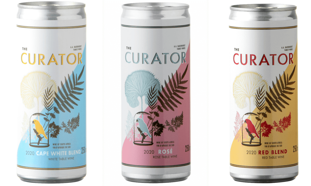Auch andere bekannte Marken wie Cloof oder Bruce Jack sind dabei und es gibt sogar alkoholfreie Weine und ein paar Sekts – wobei sich der große JC le Roux auf die letztere Kategorie einlässt. Der überraschendste Name, auf den ich gestoßen bin, ist der von AA Badenhorst, dem großen Revolutionär in Swartland. Natürlich war Adi noch nie jemand, der auf niedrigeren Marktniveaus heimisch war und er hat eine anscheinend für den Export bestimmte Marke namens "The Curator", die jetzt erhältlich ist ein Trio in Dosen. Der Badenhorst-Stil mit leicht abgefahrenem Design ist gerne präsent, obwohl der Name Badenhorst ziemlich klein gehalten ist – aber er ist nachdrücklich da.