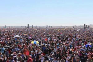 Fast 2 Millionen (!!!!!) Menschen aus dem gesamten Land reisten nach Bloemfontein, in die Mitte des Landes wo sich mehrere große Farmen für das Riesenereignis vorbereiteten. Es stand unter keinerlei kommerziellem Hintergrund, alles wurde gespendet, selbst das Toilettenpapier. Die Menschen nahmen Anfahrten bis zu 11 Stunden auf sich, kamen per Hubschrauber oder Flugzeug, nur um dabei sein zu können für diese wichtige Mission.